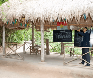 Pick-up at the customers’ hotel and transfer to Tan Cang pier by comfortable minivan. Depart to the Cu Chi tunnels by luxury speedboat. When on board, enjoy a light breakfast of The Pat' a Chou cake with Lavie water & seasonal fruits, enjoy the fresh air and understand the daily life of local citizens living along the river banks. Arrive to the Cu Chi Tunnels. Explore your excursion by watching a documentary film about one of the most sophisticated man-made tunnels together with its extraordinary wartime legends and:
